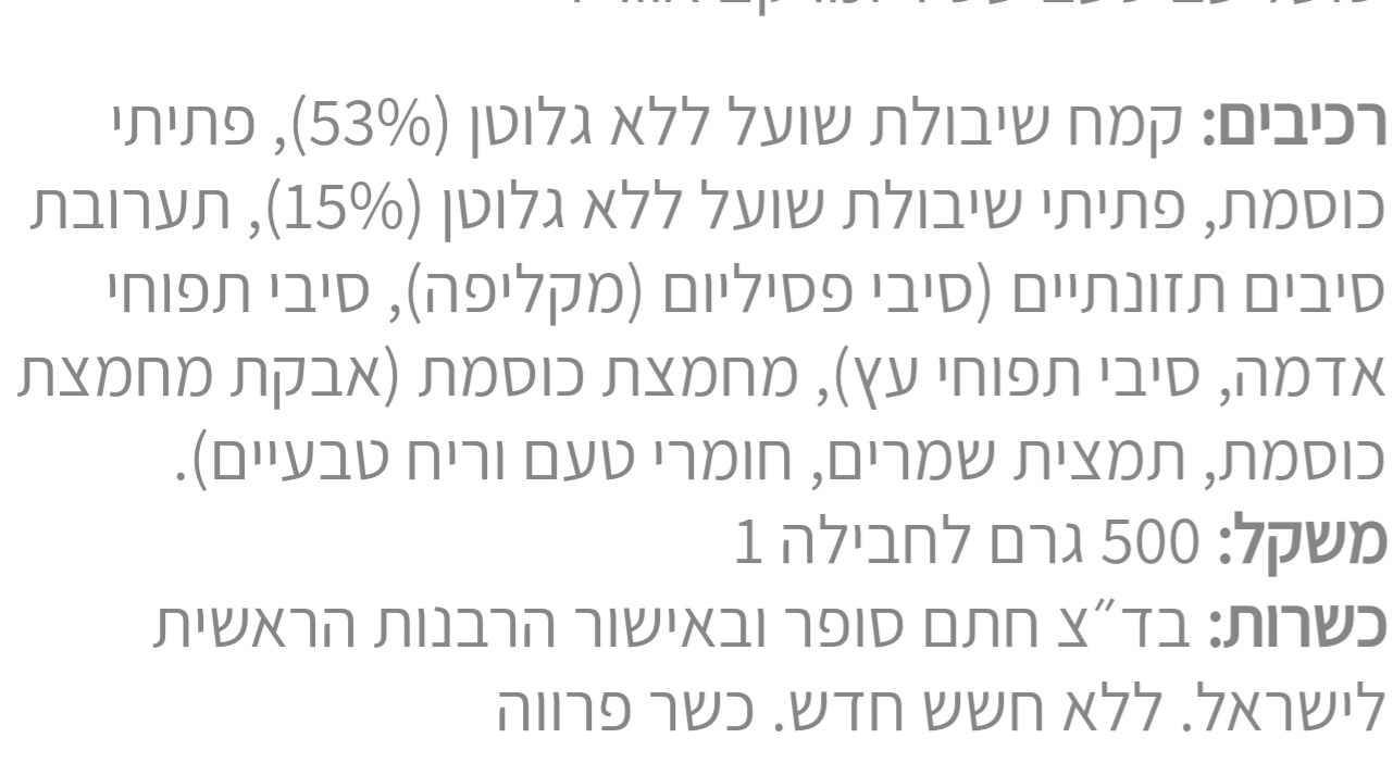 תערובת להכנת לחמניות על בסיס שיבולת שועל ללא גלוטן 500 גרם